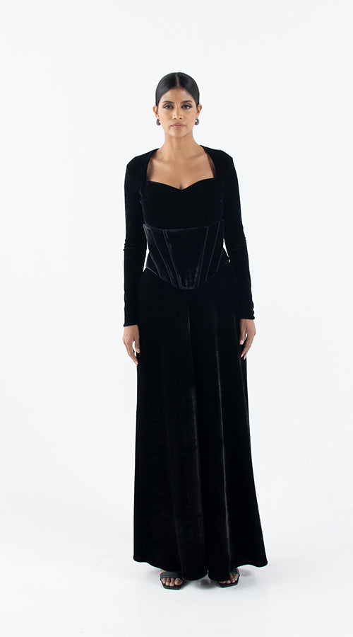 جمب سوت أسود من خام المخمل مع قطعة منفصلة من الكورسيه الاسود